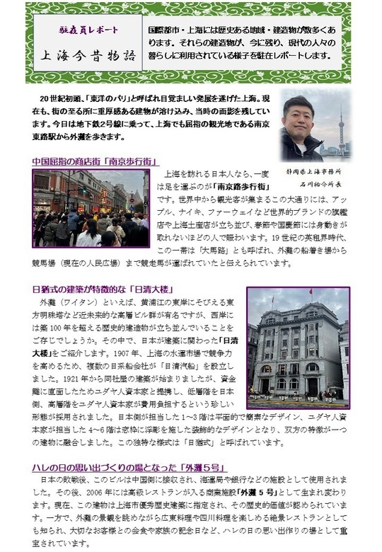 ≪静岡国際経済上海事務所 石川祐介所長レポート「上海今昔物語」》