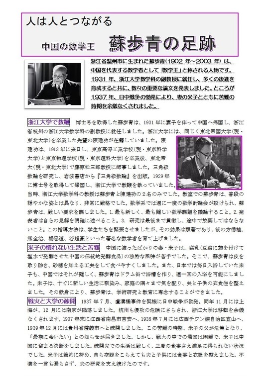 《中国の数学王 蘇歩青の足跡》